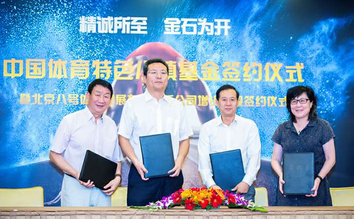 7月11日,中国体育特色小镇基金战略合作协议签约仪式在京隆重举行。青岛翰飞文化艺术交流有限公司、国家体育总局社体中心、中国体育报业总社、北京八号体育发展有限责任公司四方正式宣布发起设立中国体育特色小镇基金,这标志着中国体育特色小镇建设有了实质性资金支持平台,也是推动、落实国家体育总局关于建设100个运动休闲特色小镇工作的具体响应和举措。